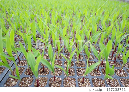 北海道のハウスでの甜菜(ビート)の育苗風景