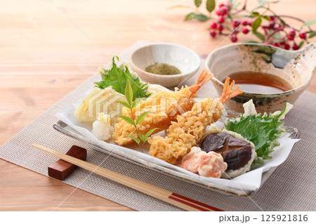 天ぷら盛り合わせ ( 海老、しいたけ、人参、玉葱、大葉 )