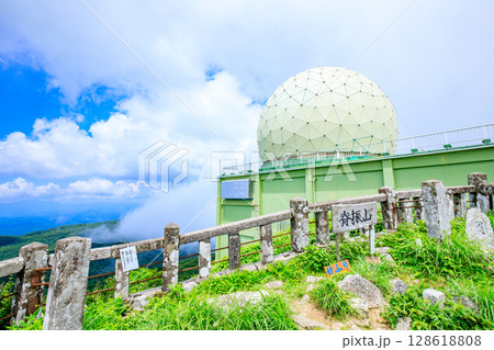 脊振山山頂の背振神社と対空レーダー