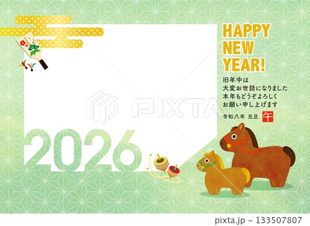 2026年賀 午年親子のフォトフレーム年賀状[1窓]
