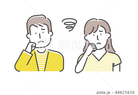 若い男女 (夫婦・カップル) 上半身 ベクター イラスト / 疑問・クエスチョン・困っている