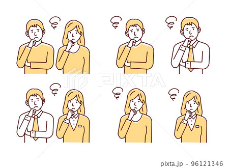 若い男女 (夫婦・カップル・同僚) 上半身 ベクター イラストセット / 悩んでいる・困っている
