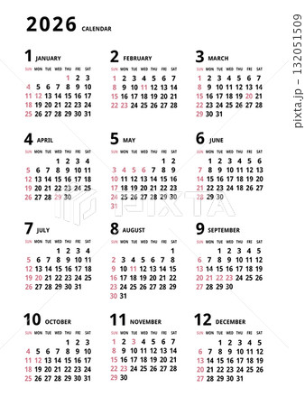 2026 calendar planner. Corporate week. Template layout, 12 months yearly, white background. Simple design for business brochure, flyer, print media, advertisement. Week starts from Monday