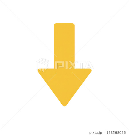明るい黄色の下向き矢印アイコン、強調を示す黄色のダウンマーク、目立つ下矢印のシンプルな図形