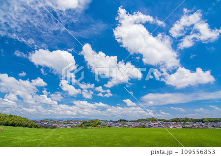 《雲のある風景》郊外の田んぼに広がる夏の青空