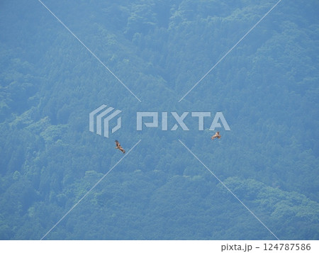 さわやかな青空と夏山に架かる白い雲《背景素材》