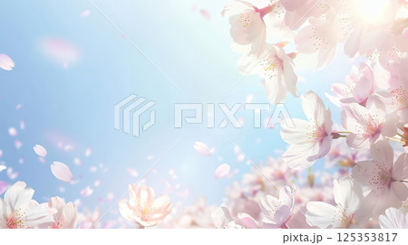 水彩で描いた春の花と富士山と青空の背景イラスト
