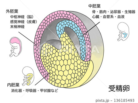 受精卵が胎児の部位に分かれるイラスト