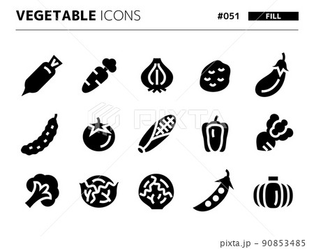 野菜に関連する塗りつぶしスタイルのアイコンセット_051