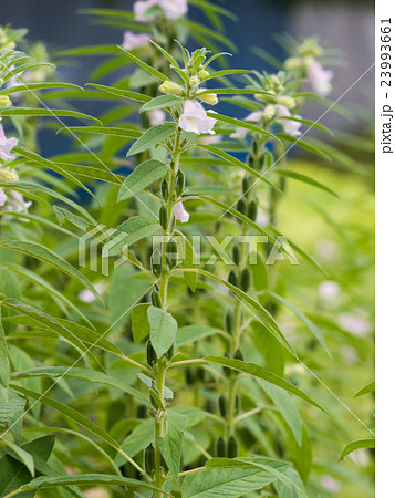 清楚なゴマの白い花