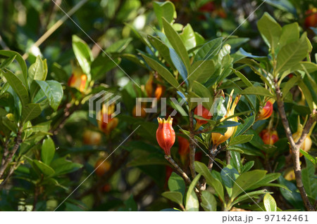 クチナシの花はその芳香と清楚な白い花で惹きつける。実も代表的な着色用スパイスとして重用されている。
