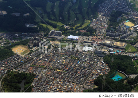 兵庫県の能勢電鉄日生中央駅付近を空撮