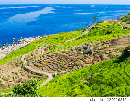 田植えの準備が進む白米千枚田(石川県輪島市白米町にある棚田,2024年の震災被害前の能登半島の風景)