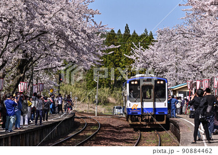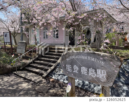 能登さくら駅の愛称があるのと鉄道の能登鹿島駅の満開の桜