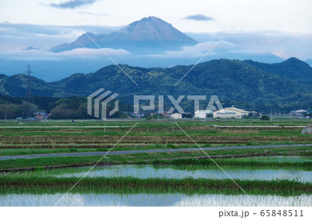 田植え後の田んぼから遠くの大山を望む … 島根県 安来市