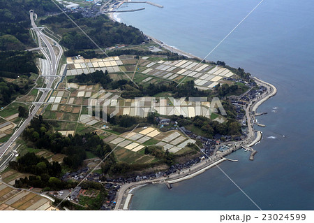 能登半島の七尾市大泊町付近を空撮