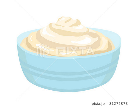 Blue Bowl of Mayonnaise Isolated on White Background. vector flat