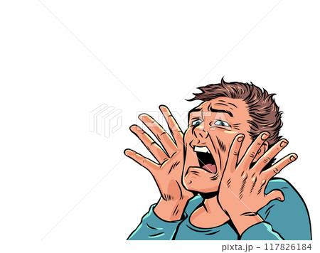 pop art man screams in horror, panic face