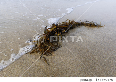 春の海、波打ち際の海藻
