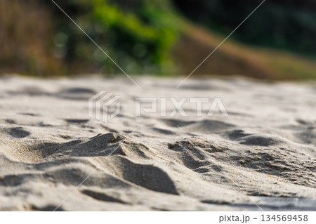 砂浜のハマヒルガオと鳥の足跡