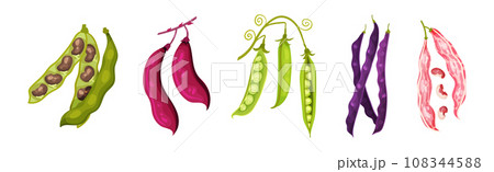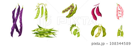 Grain Legume or Pulse Crop with Pod and Beans Vector Set
