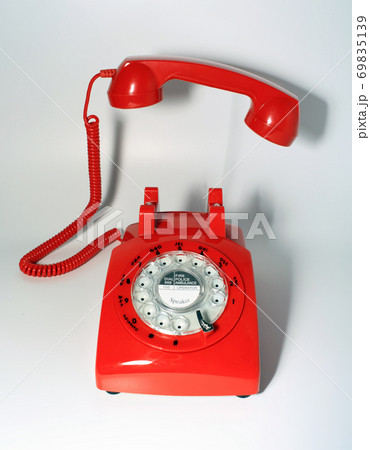 Retro rotary dial phone on call with no body, hang up by hollow man