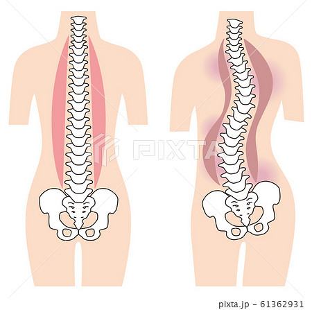 まっすぐな背骨 歪んだ背骨 脊椎側弯症