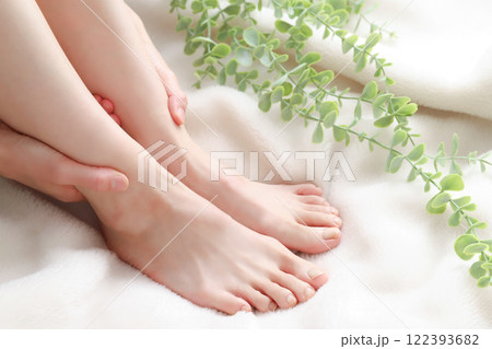 足のむくみケア・フットマッサージ・ボディケアをする女性