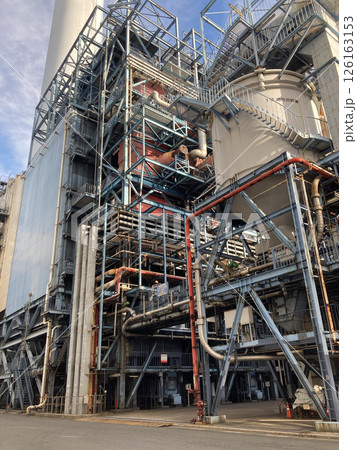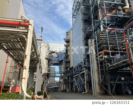 配管が複雑に入り組んだ【発電所の脱硫・粉塵除去プラント】