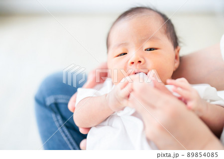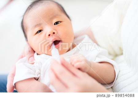 機嫌良くシロップ薬を飲む赤ちゃん ビタミンK製剤 新生児の出血性疾患予防