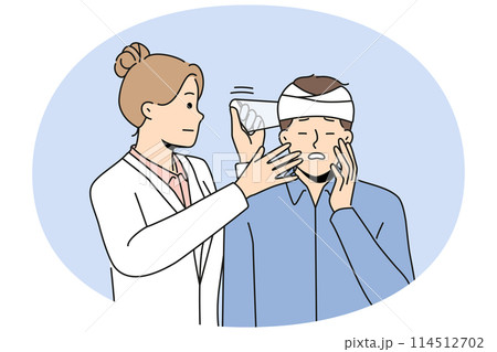Doctor put bandage on man with head injury