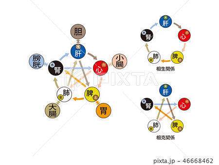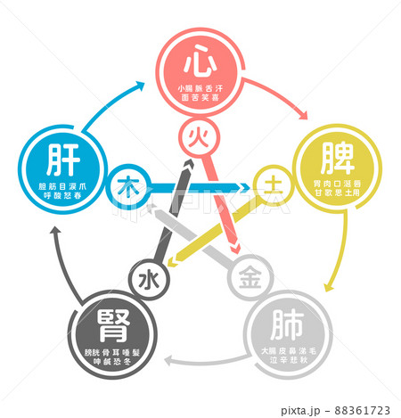薬膳や漢方の説明に使いやすい五行学説のイラストセット