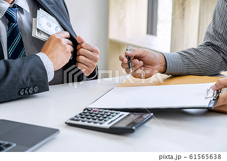 Businessman giving money while making deal to agreement a real estate contract and financial corporate