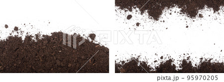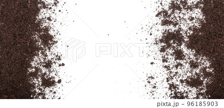 Pile heap of soil isolated on white background with copy space for your text. Top view