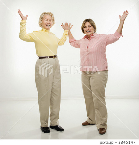 Women with arms in air.