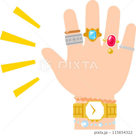 指輪や腕輪を大量に着けた手