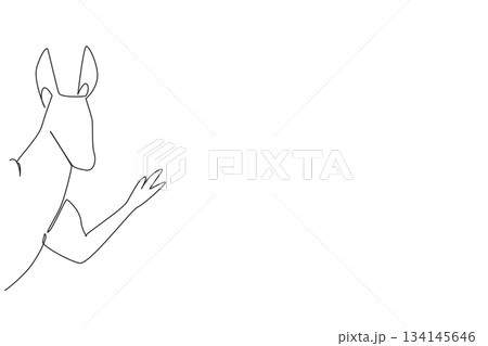Continuous line drawing of a kangaroo waving its paw behind the wall, showing humor and creativity in animal art. This nature concept design celebrates International Kangaroo Awareness Day.
