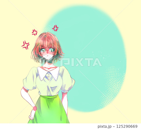 ムカついている女性 ムカつきマーク スペース