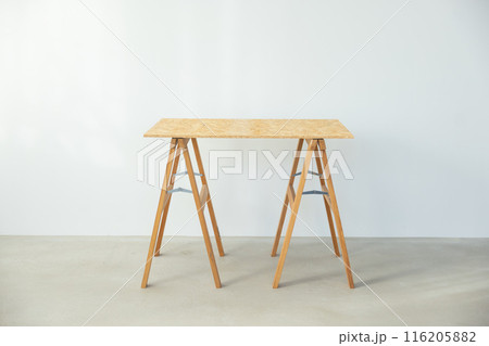 Wooden tabletop with cutting board for product montage