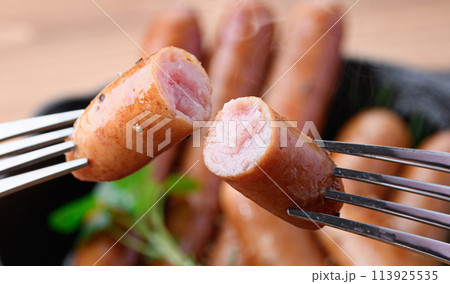 Delicious fresh boiled chicken or pork sausage cut into slices