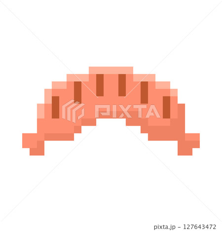 Grilled sausage pixel art vector icon, 8 bit game roasted cooking meat food, butcher shop product, bbq, fast food hotdog