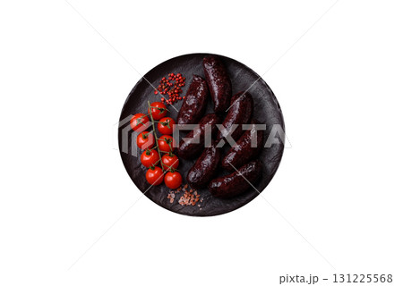Blood sausage, pudding, meat food with lard and spices. Blood sausage