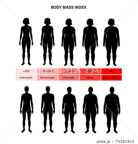 Creative vector illustration of bmi, body mass index infographic chart with silhouettes and scale