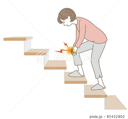 階段の途中で膝を抑える中年女性のベクターイラスト