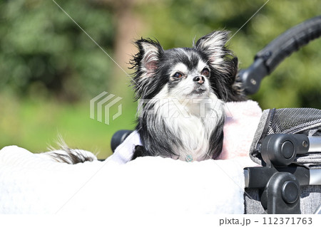 パテラで足に負担をかけられず犬用カートで元気に散歩するロングコートチワワ 膝蓋骨脱臼