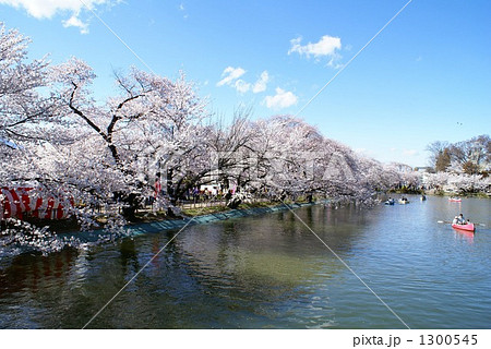 信州須坂市日本桜100選臥龍公園の龍が池と桜