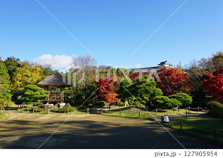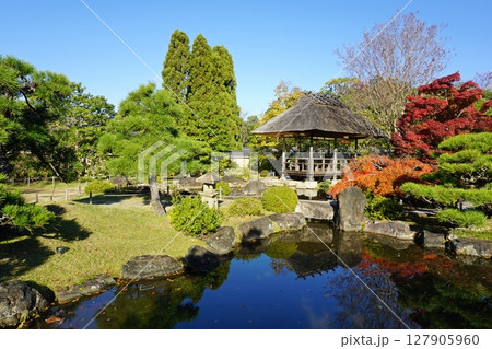 紅葉が美しい秋の好古園 築山池泉の庭
