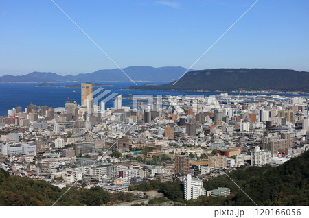 サンポート高松に「あなぶきアリーナ香川」のある高松市街地風景