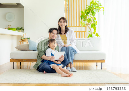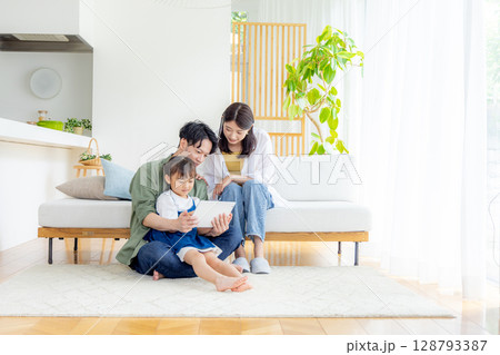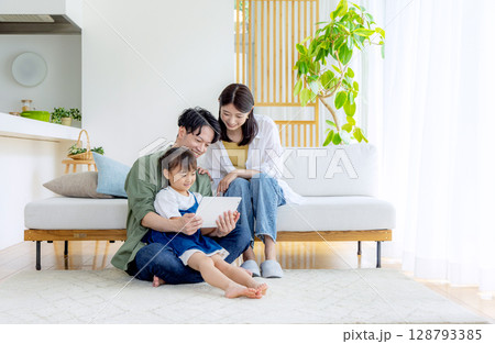 若い家族 リビング タブレット