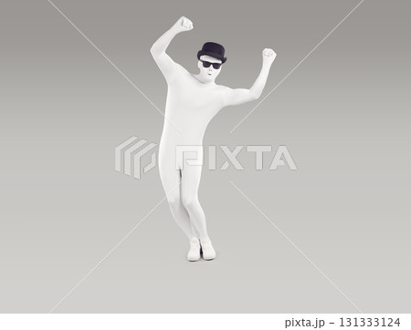 Serious man with black winter coat and winter hat studio portrait in glitch and RGB color split effect style